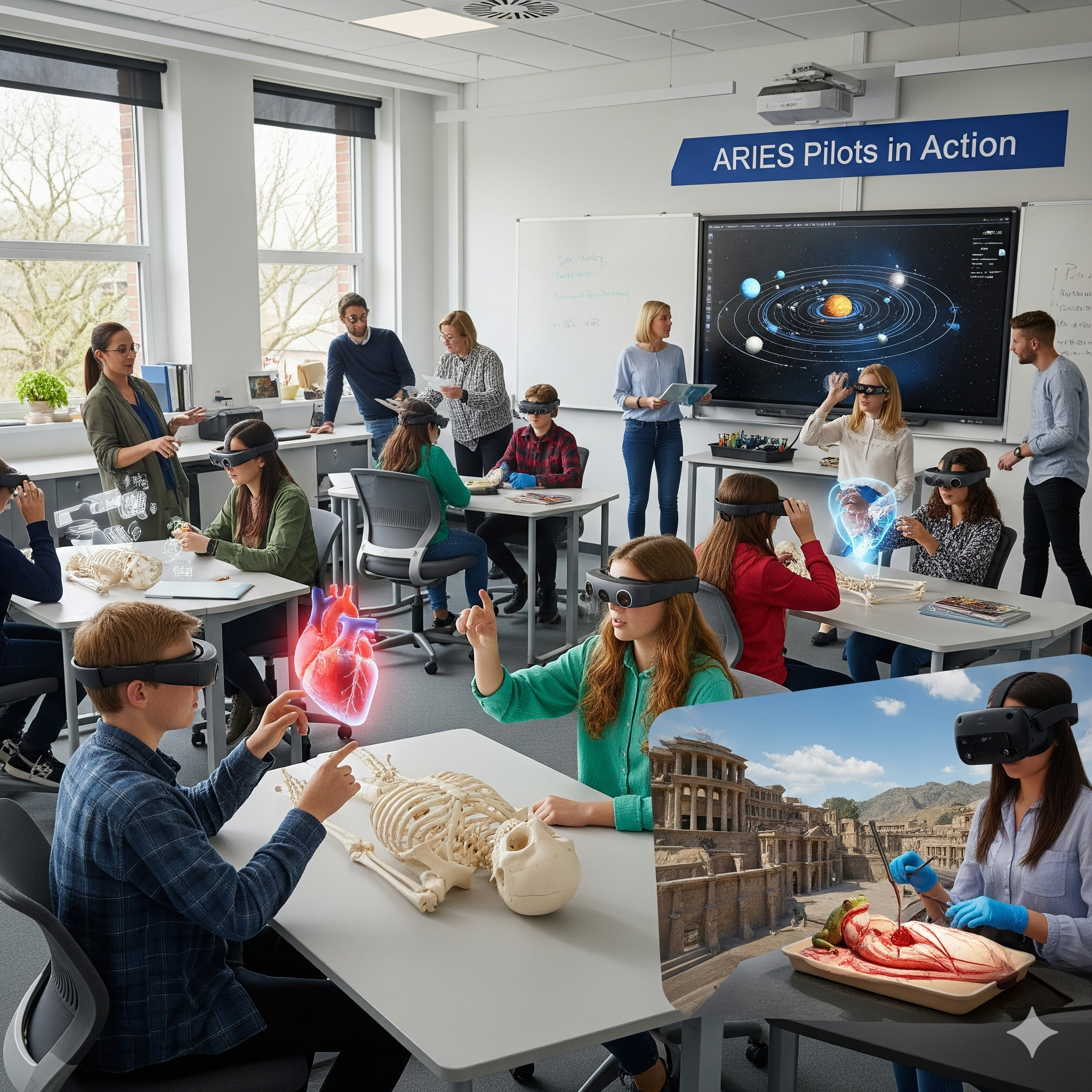 As part of ARIES, a coordinated piloting action brought the project’s approach into real secondary-school classrooms across partner countries and France. With the support of schools and consortium partners, 23 pilots engaged 453 students to test how elements of Augmented and Immersive Reality can be meaningfully integrated into traditional teaching. Coupled with Design Thinking, these pilots explored new ways to enhance engagement, creativity, and problem-solving, while generating concrete evidence on the feasibility and impact of the ARIES methodology. The insights gathered here inform both the refinement of our tools and their future deployment at scale.