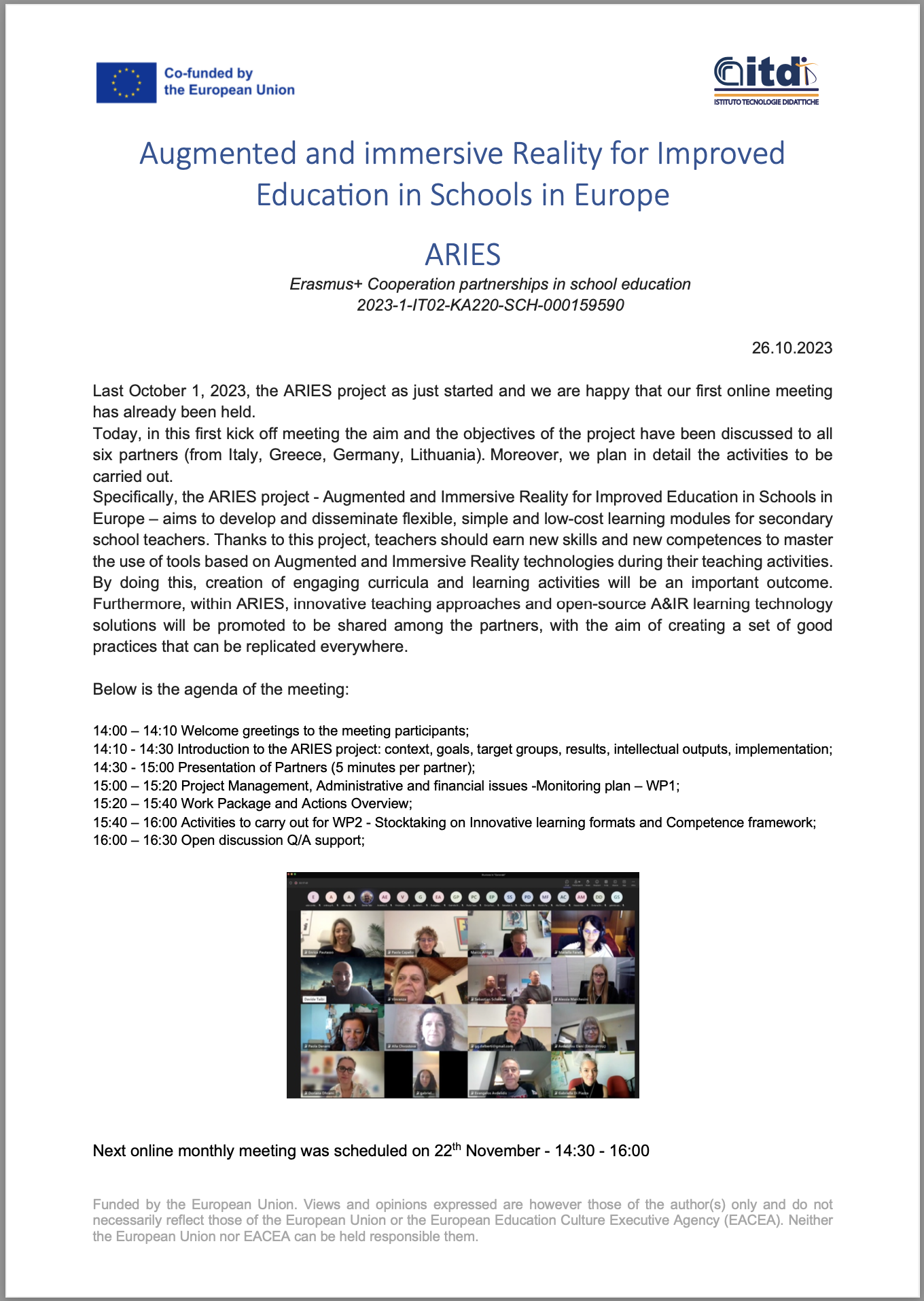A newsletter on the kick-off meeitng of the ARIES project, to inform the community about the start of the project and the planned actions.
