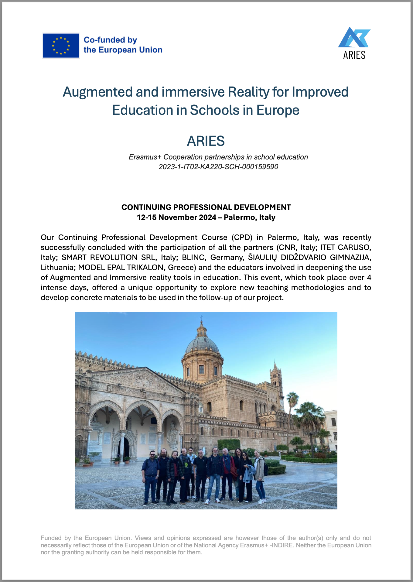 A newsletter about the ARIES Continuing Professional Development (CPD) course held in Palermo (12–15 Nov 2024),