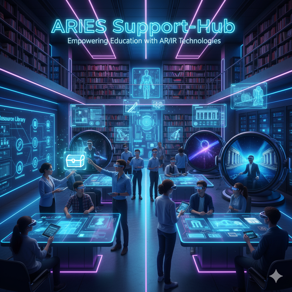 L'ARIES Support-Hub è uno spazio dedicato progettato per supportare l'insegnamento e l'apprendimento innovativi attraverso l'integrazione delle tecnologie Augmented e Immersive Reality (AR/IR). Fornisce risorse, strumenti e corsi per consentire a insegnanti, formatori e studenti di esplorare e applicare efficacemente queste tecnologie all'avanguardia nell'istruzione.
